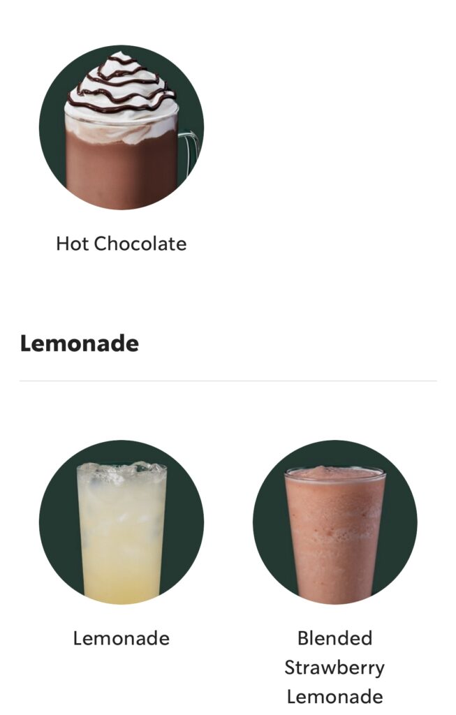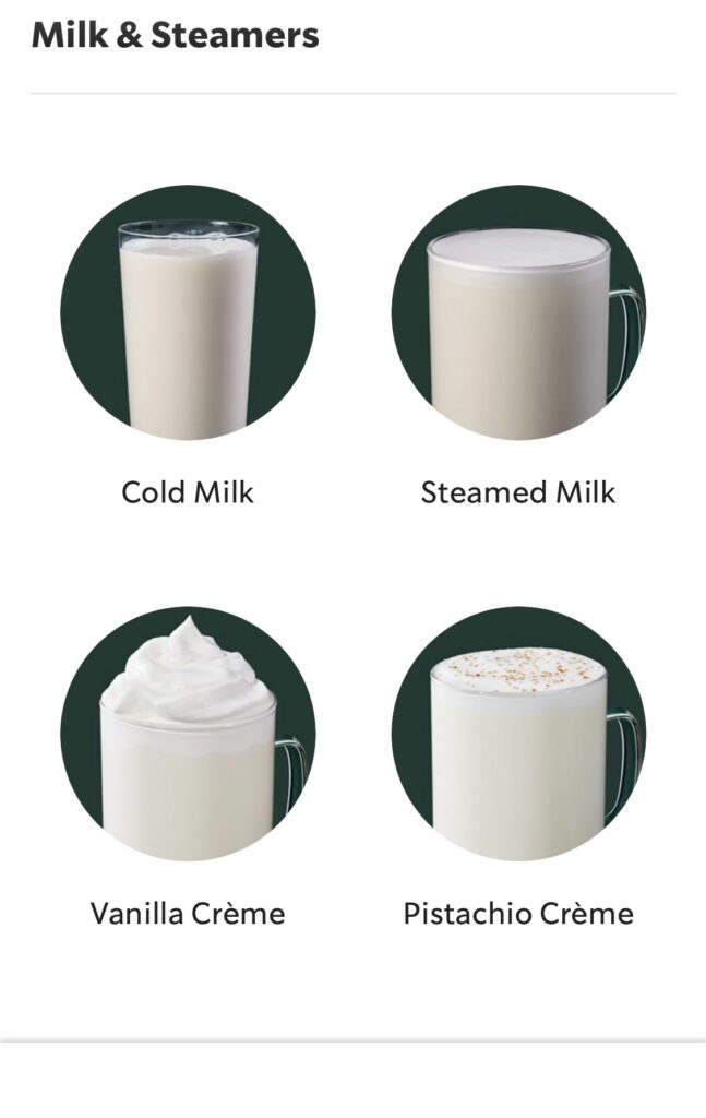 こちらはアメリカのスタバのドリンクメニューからの一部です。子供メニューも紹介しています。